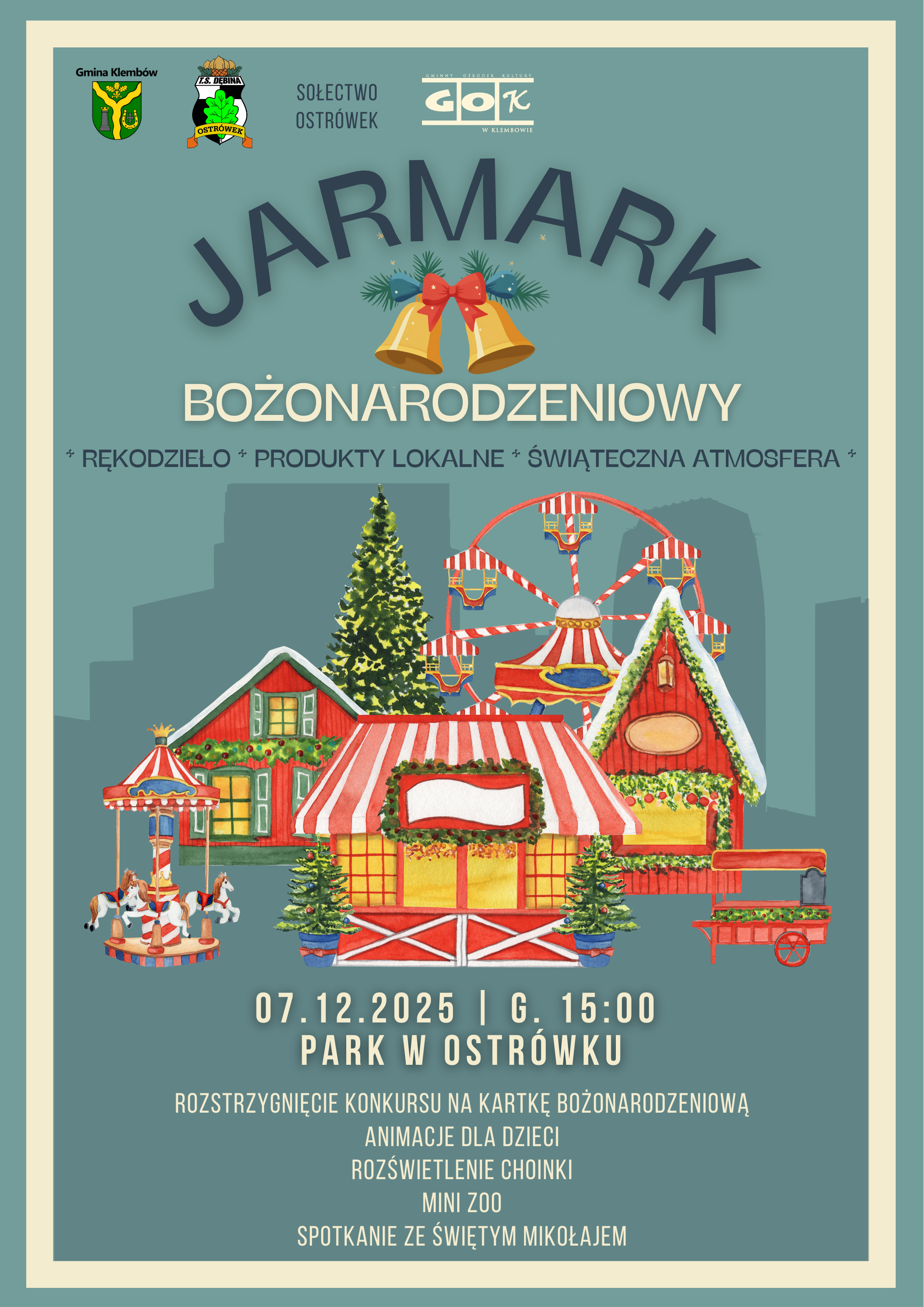 Serdecznie zapraszamy już 7 grudnia 2025 o godz. 15:00 do Parku w Ostrówku, gdzie odbędzie się wyjątkowy, świąteczny jarmark pełen magii, atrakcji i lokalnych smakołyków!